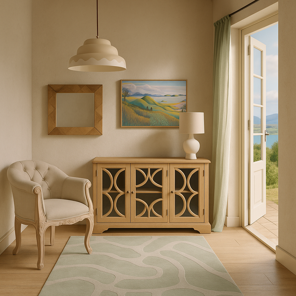 The room concepts below have been created with ai to demonstrate how the curated feng shui collections work. Click on the circles to see New Earth Angel Shop Equivalent available items.